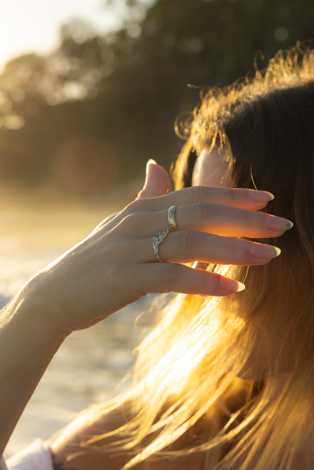 This ring is so beautiful! It quickly became one of my everyday rings. I have anxiety and the texture on the flat section is really soothing to rub!