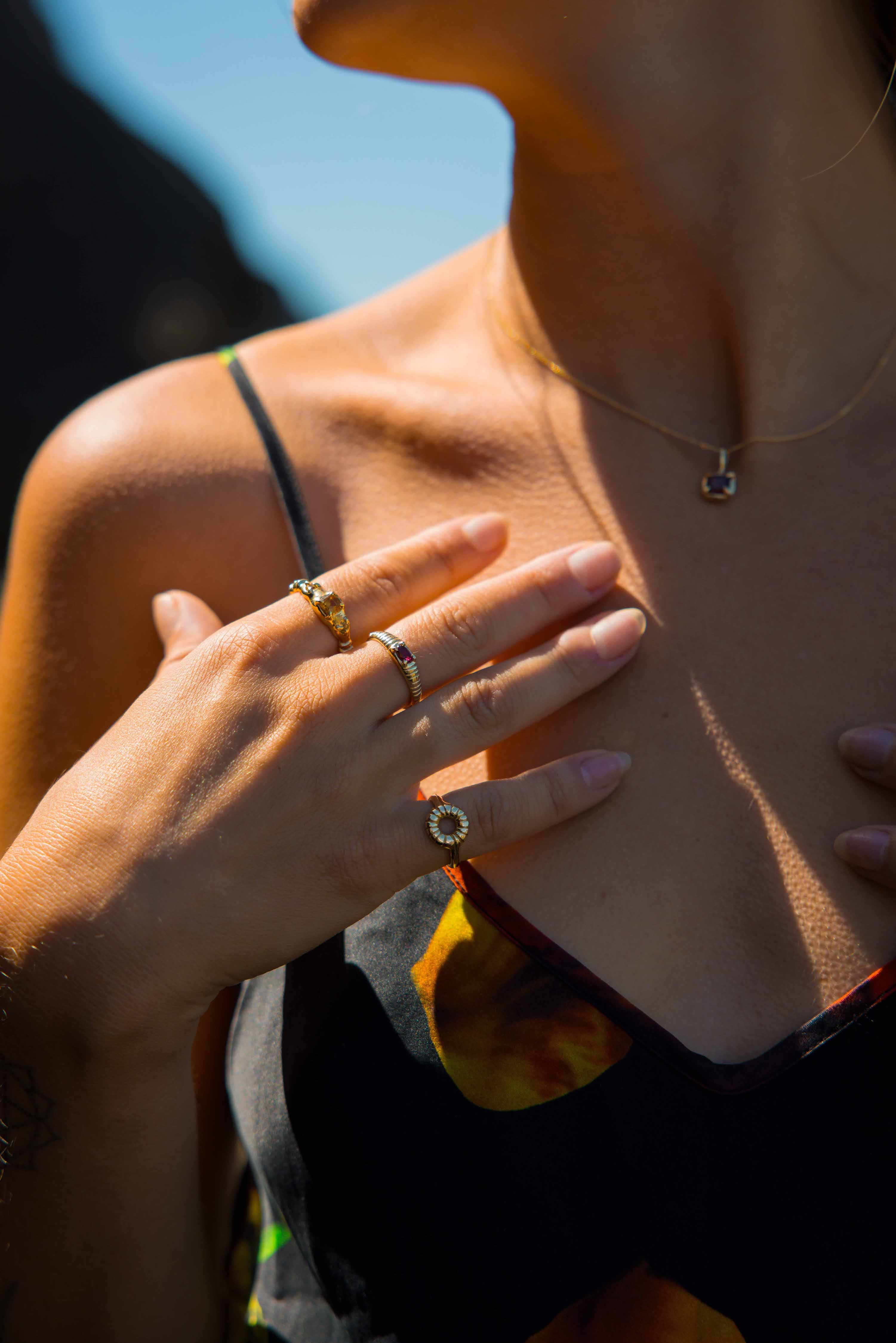 This ring is so beautiful! It quickly became one of my everyday rings. I have anxiety and the texture on the flat section is really soothing to rub!