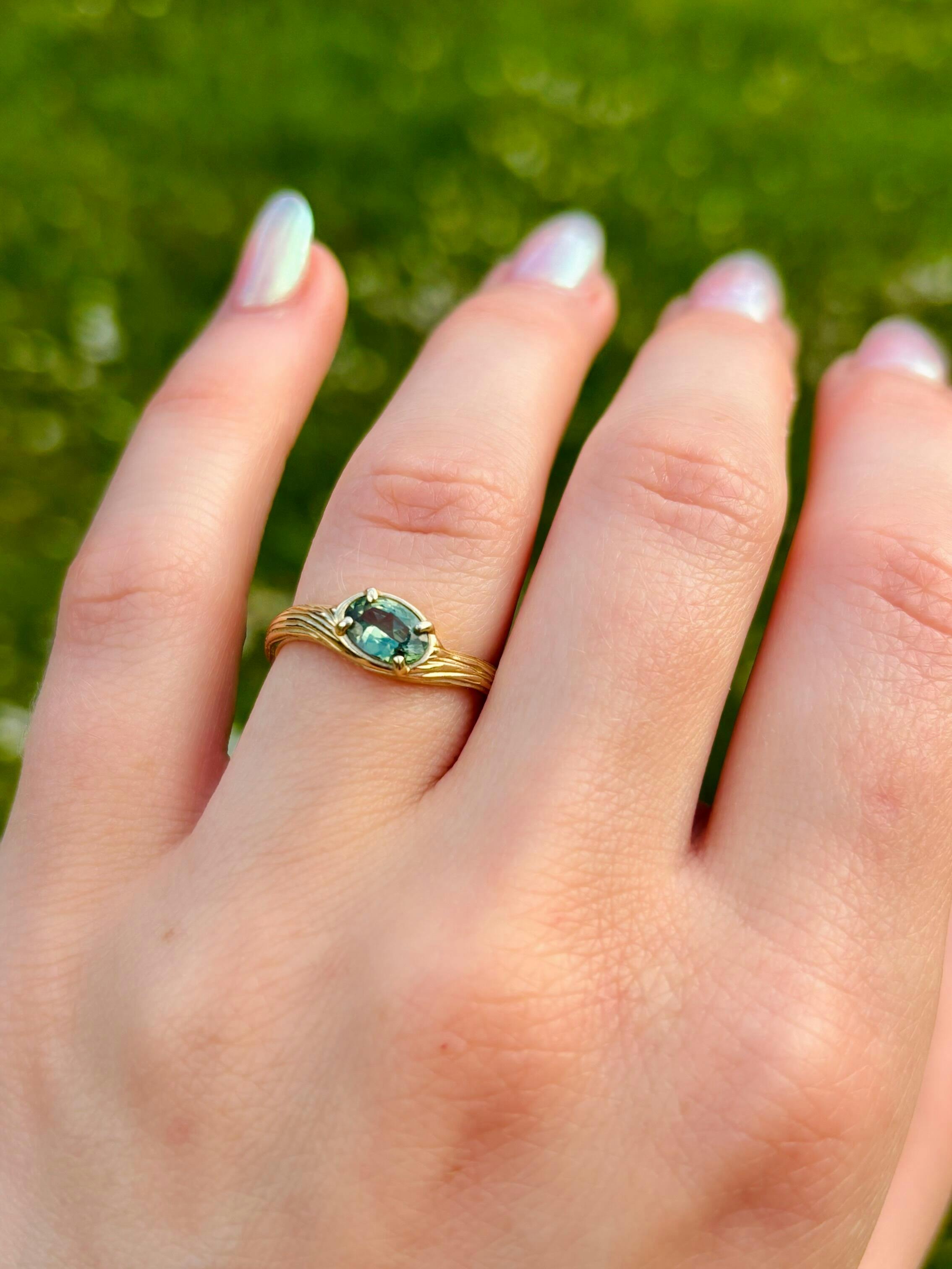 "I had a very special sapphire which I'd held onto for years, trying to find the right person to make me a ring. From the first time I saw Filippa's work, I knew she'd be the one to make my ring. Apart from her incredible talent and creativity, her warmth and passion for bringing this dream to life was what really stood out. I didn't know what I wanted, or where to start, but Filippa patiently guided me and encouraged me to really dream until one day - she drew "the one". My ring is so special to me, and I feel like I've (quite literally) struck gold by finding Filippa and having her bring this piece of my heart out and put it onto my finger. Thank you!!!"