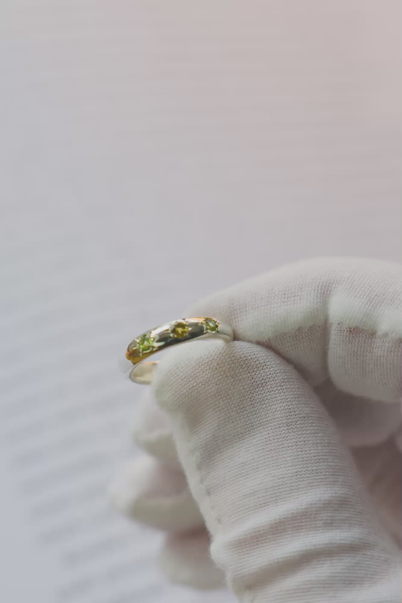 Indulge in the celestial wonder of our statement piece "Stellar", adorned with ethereal tanzanite and peridot gemstones nestled in a sleek sterling silver band.